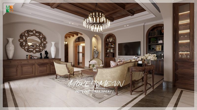Trang trí nội thất phòng khách của chung cư cao cấp theo phong cách tân cổ điển sang trọng sẽ làm nổi bật cá tính đẳng cấp của gia chủ.