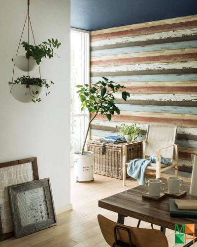 Mẫu giấy dán tường Nhật Bản giả gỗ với gam màu đa sắc giúp nổi bật căn phòng nhà bạn.